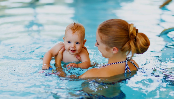 Besøgende kan nyde en forfriskende dukkert i det termiske vand i Galaxy-zonens indendørs og udendørs bassiner.